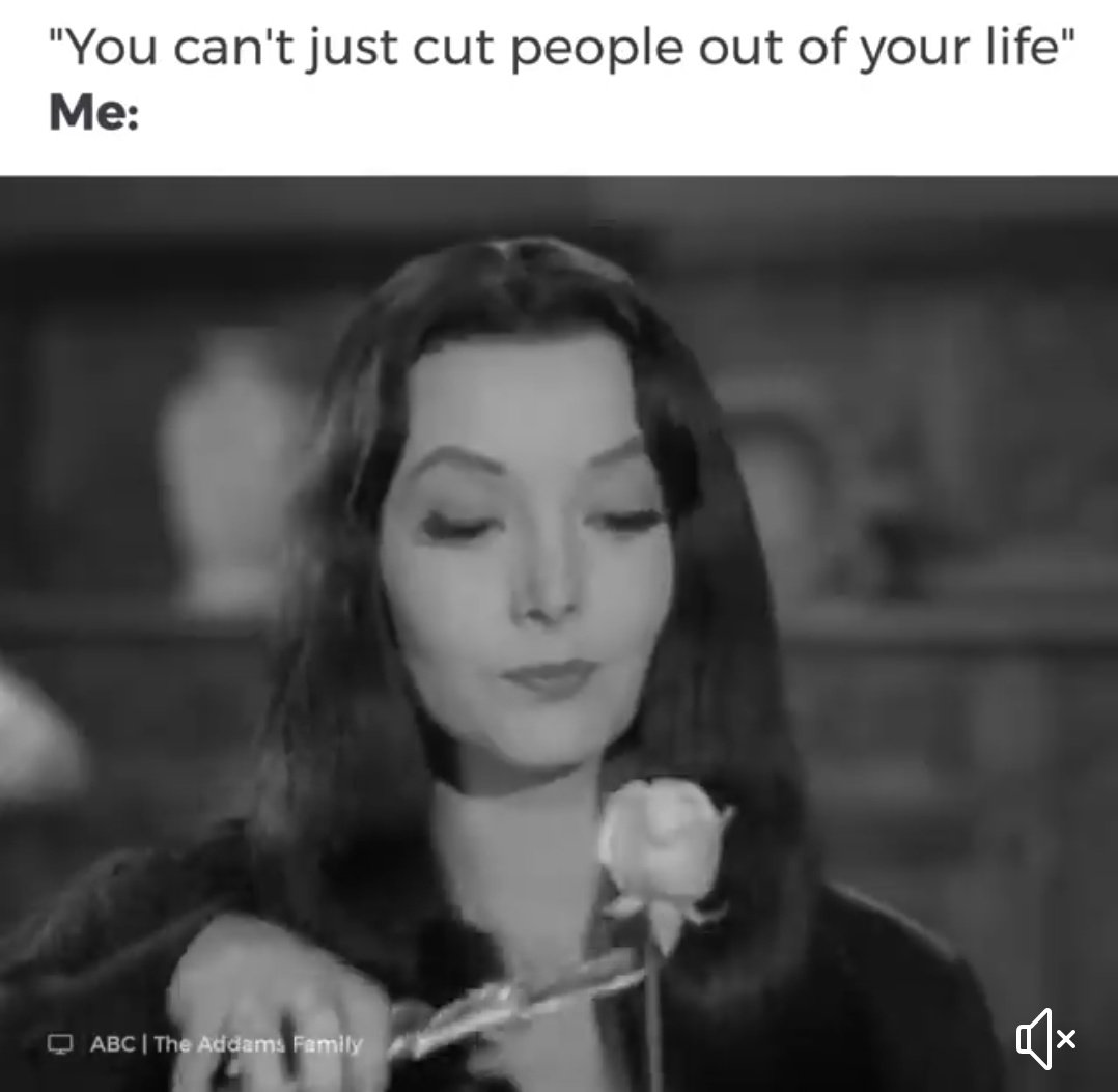 Yasssss! “You can’t just cut people out of your life!” Me: “Snip